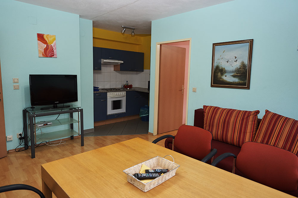 - a living room with a sofa bed (140/200 cm) and a non-extensible sofa (90/200 cm).